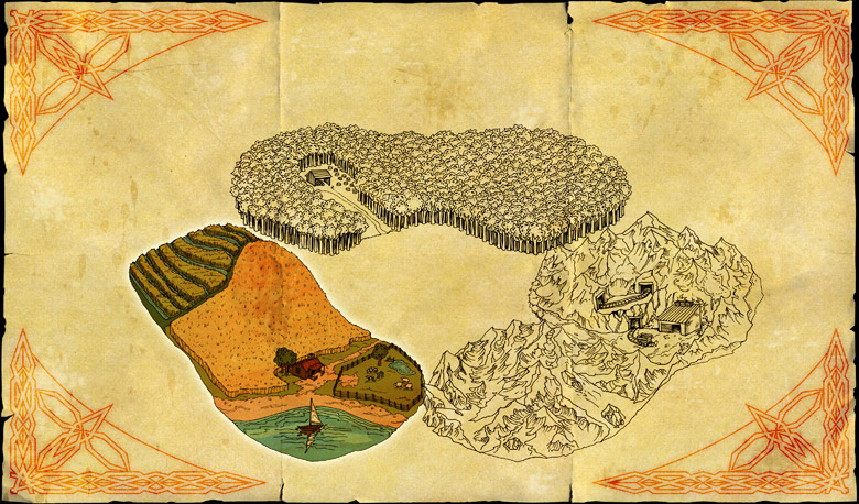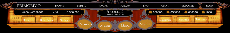 This is the UX and UI design project for an old Brazilian game Primordio. In the top there is a panel with the basic commands, and in the center there is a map interface for the control of resources and kingdom’s administration.
